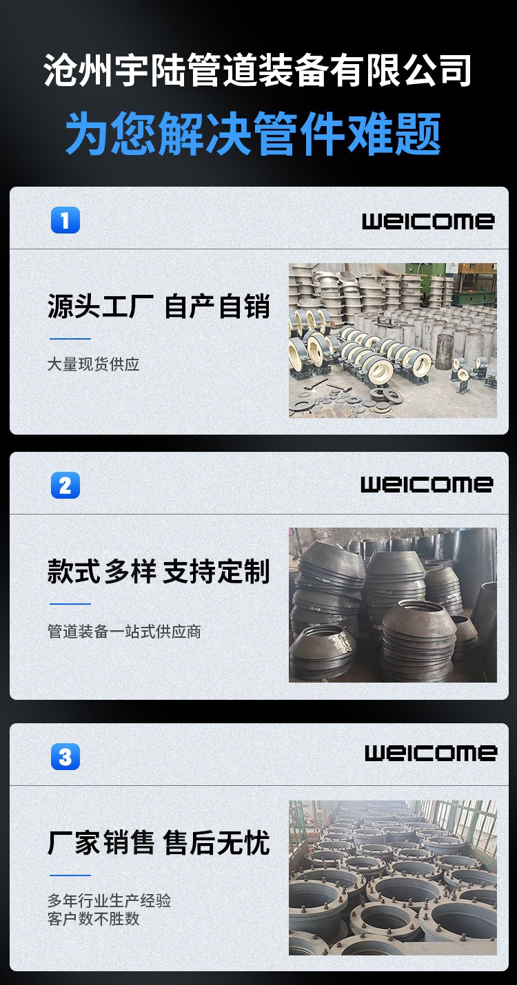 主营产品:防水套管、管道伸缩器、补偿器、法兰、弯头、人孔、支吊架、过滤器、三通四通、通气管、金属软管、异径管