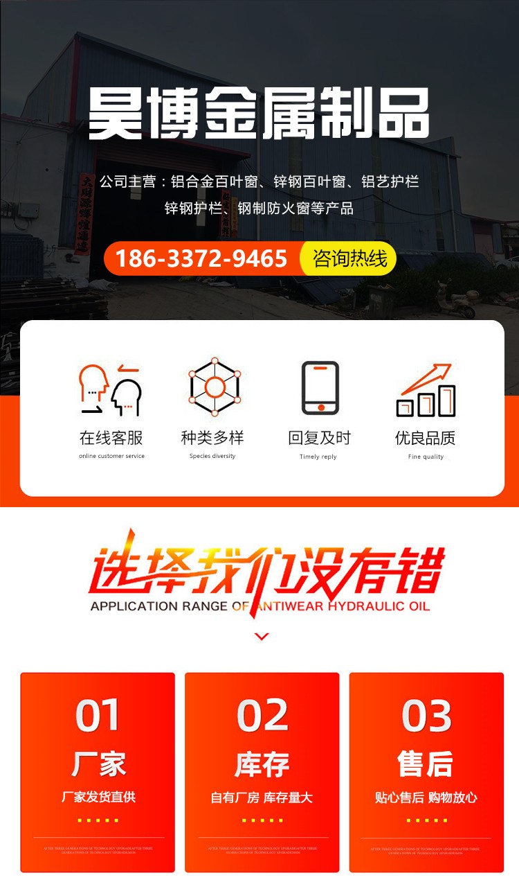 主营产品:主营:铝合金百叶窗、锌钢百叶窗、护栏等