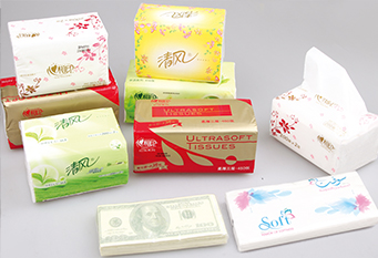 适用于软抽式棉柔巾、面巾纸、方巾纸、餐巾纸、切刀纸、纸巾纸等的自动薄膜包装。
