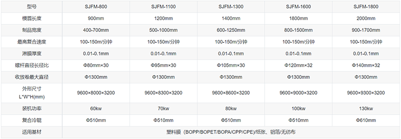 单层淋膜复合/三层(夹心)复合/多层复合(可一次性七层复合,需增加挤出机组)