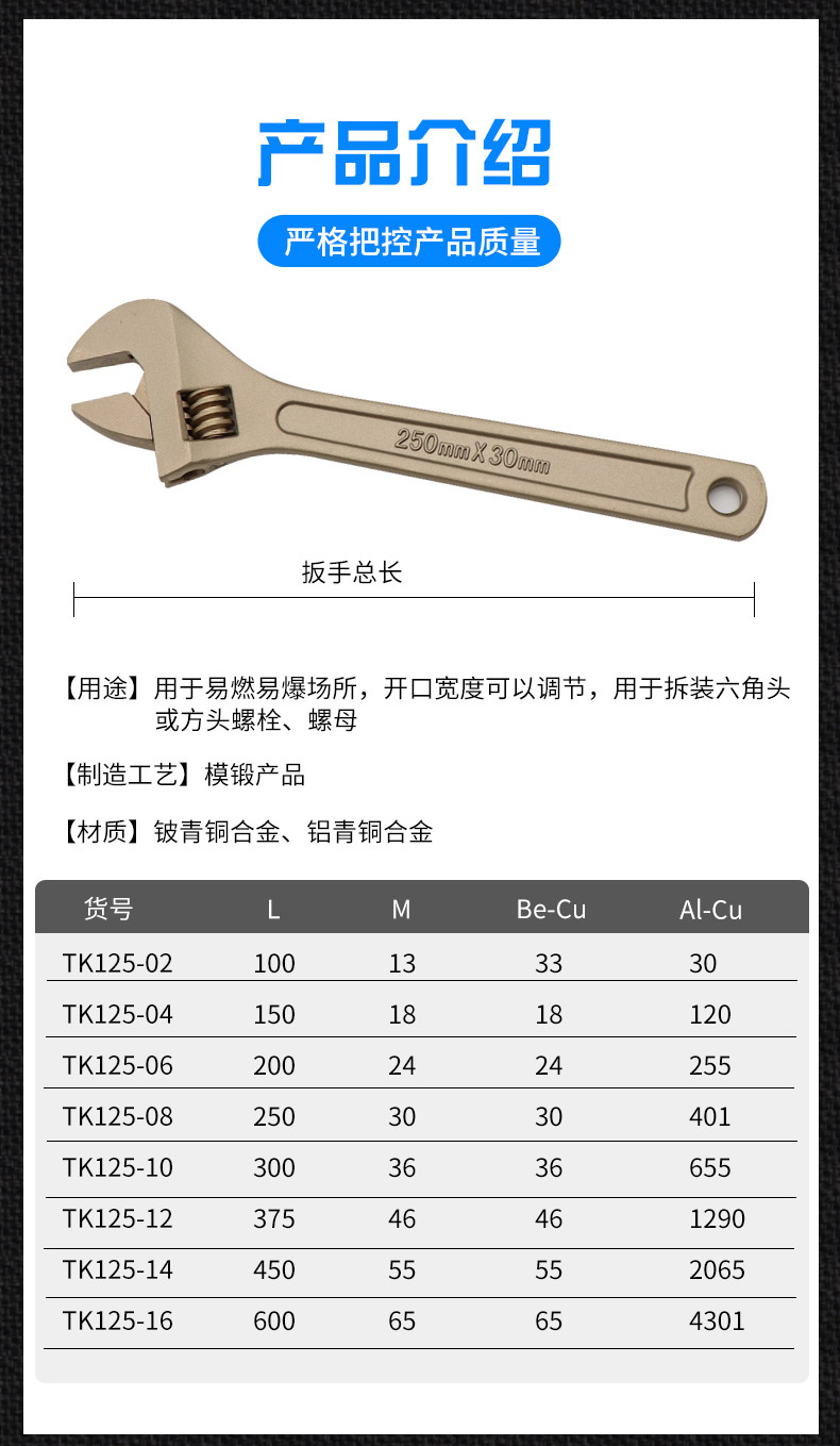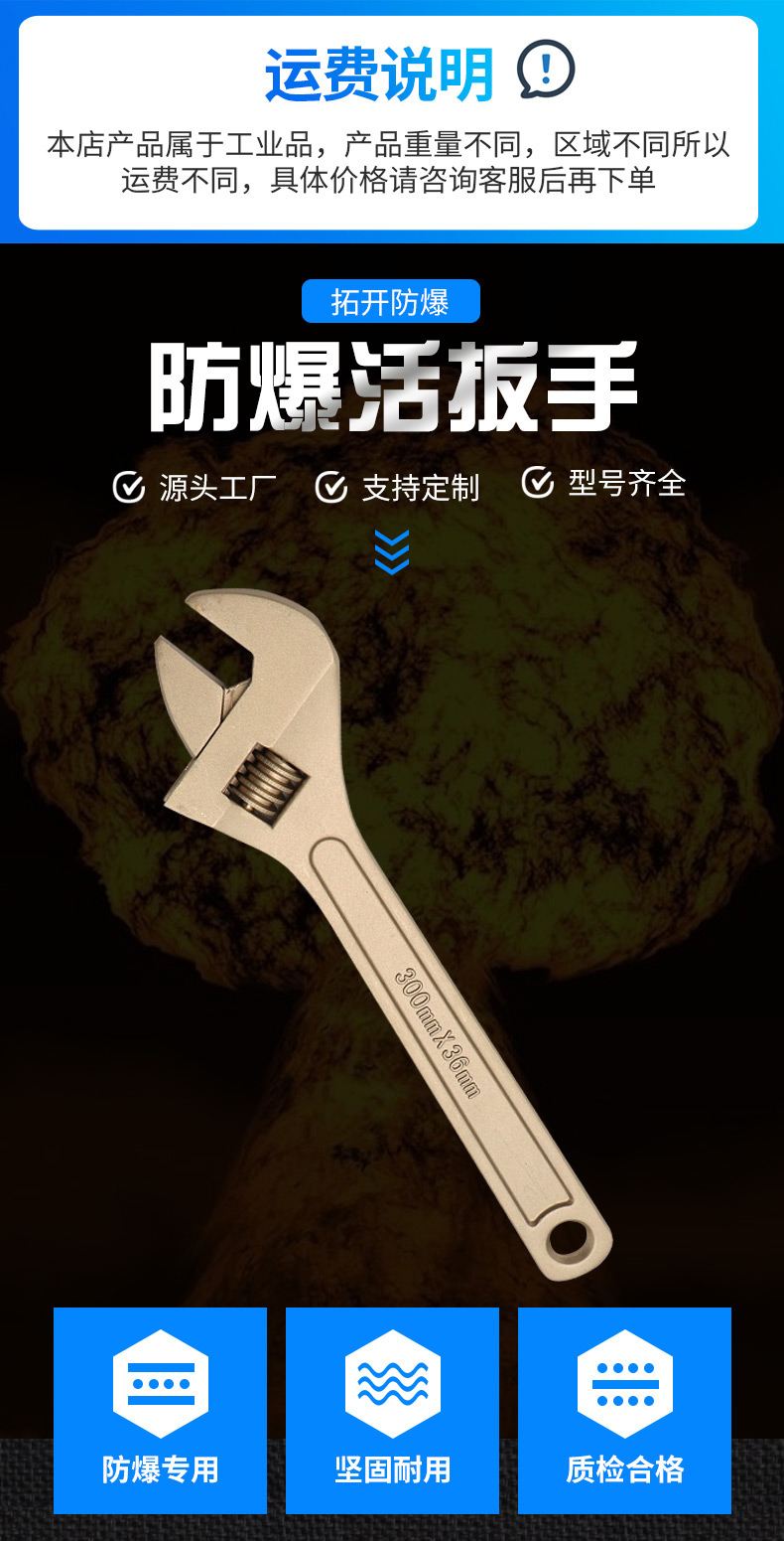 防爆活扳手 防爆工具铜扳手铝青铜铍青铜 6寸8寸10寸12寸