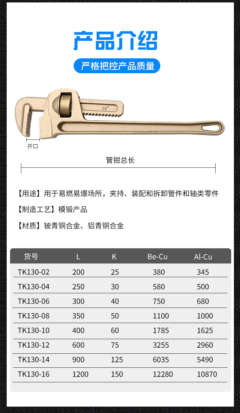防爆管钳子 铍青铜管钳 铝青铜管钳子 防爆工具 无火花工具