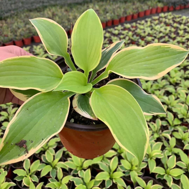 金边玉簪,是百合科,玉簪属,多年生宿根草本。花期6月-9月。耐寒,生长势强健,栽培容易。多于春、秋季分株繁殖。也可播种或组织培养繁殖。也可播种或组织培养繁殖。同属还有开淡紫、堇紫色花的紫萼、狭叶玉簪、波叶玉簪等。性强健,耐寒,喜阴,忌阳光直射,春秋季半光,冬季向阳。春秋季半光,冬季向阳。夏季温度在34℃以下,冬季不得低于10℃。