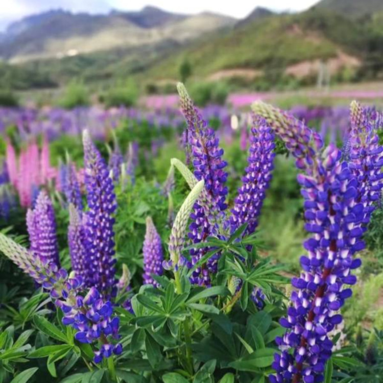 鲁冰花一般指羽扇豆,一年生草本,高可达70厘米。茎基部分枝,掌状复叶,小叶披针型至倒披针型,叶质厚,总状花序顶生,花序轴纤细,花梗甚短,萼二唇形,被硬毛,花冠蓝色,旗瓣和龙骨瓣具白色斑纹。荚果长圆状线形,种子卵形,扁平,斑纹,光滑。3-5月开花,4-7月结果。