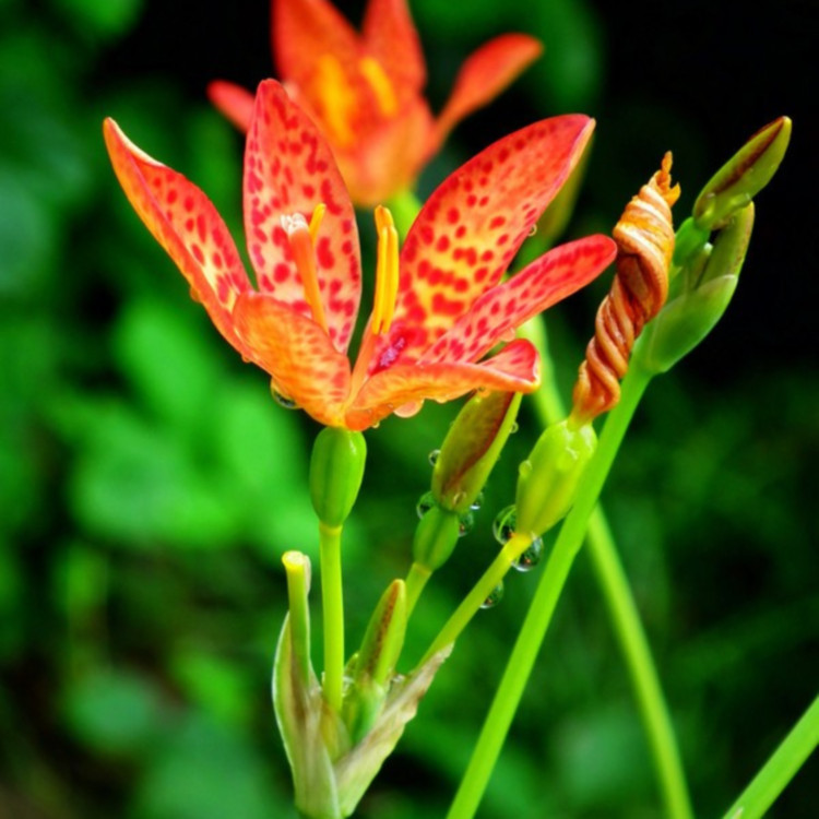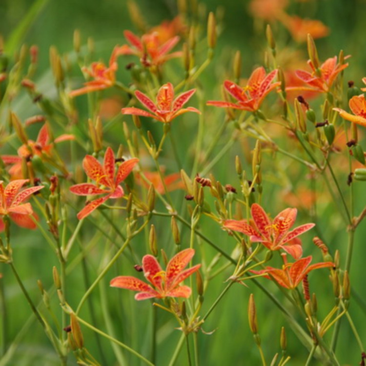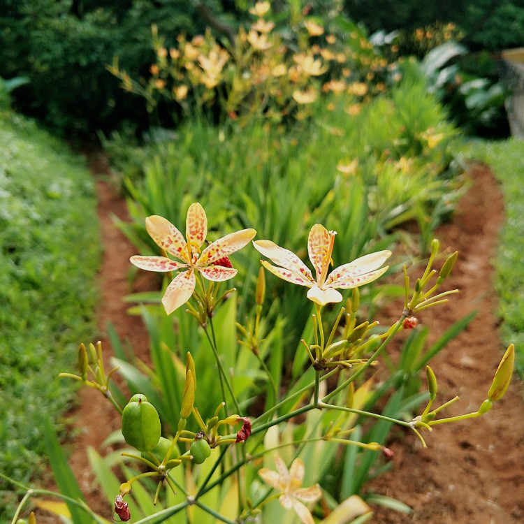 射干为鸢尾科射干属多年生草本。根状茎为不规则的块状,斜伸,黄色或黄褐色;须根多数,带黄色。茎直立,茎高1~1.5米,实心。