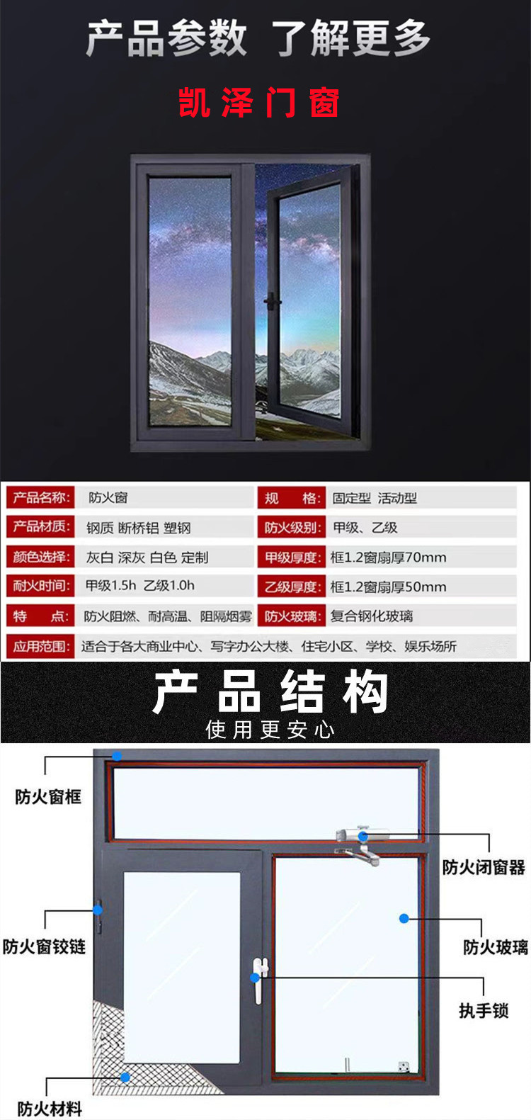 主营产品:防火门、防火窗、耐火窗、断桥铝窗、防火卷帘门、防盗门、工业门等