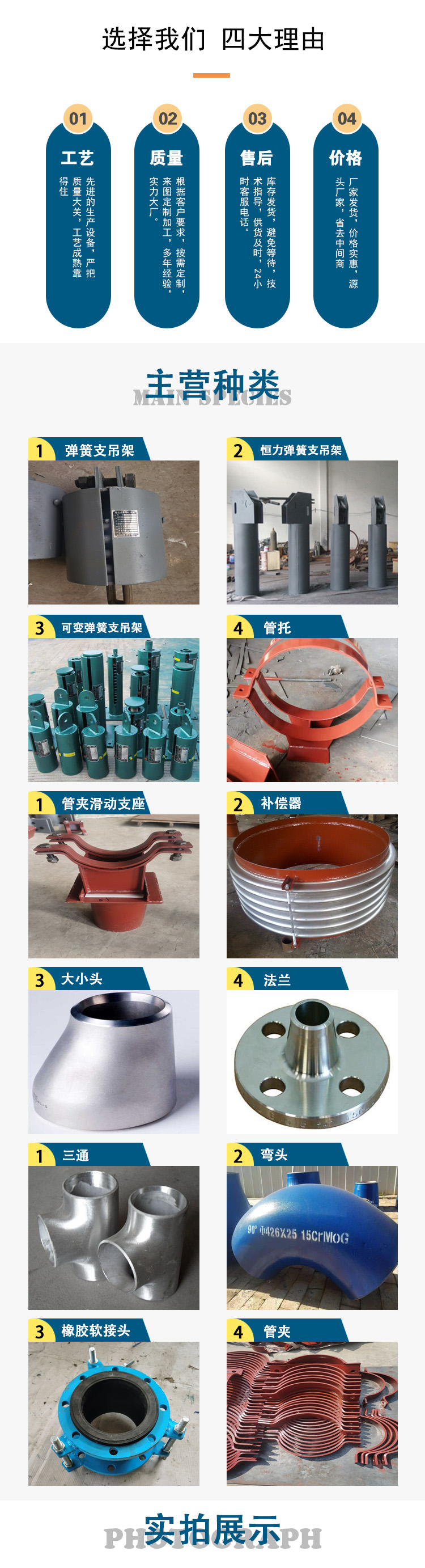 主营产品:生产、销售管道设备、管件系列产品、工厂化配置、支吊架、桥架