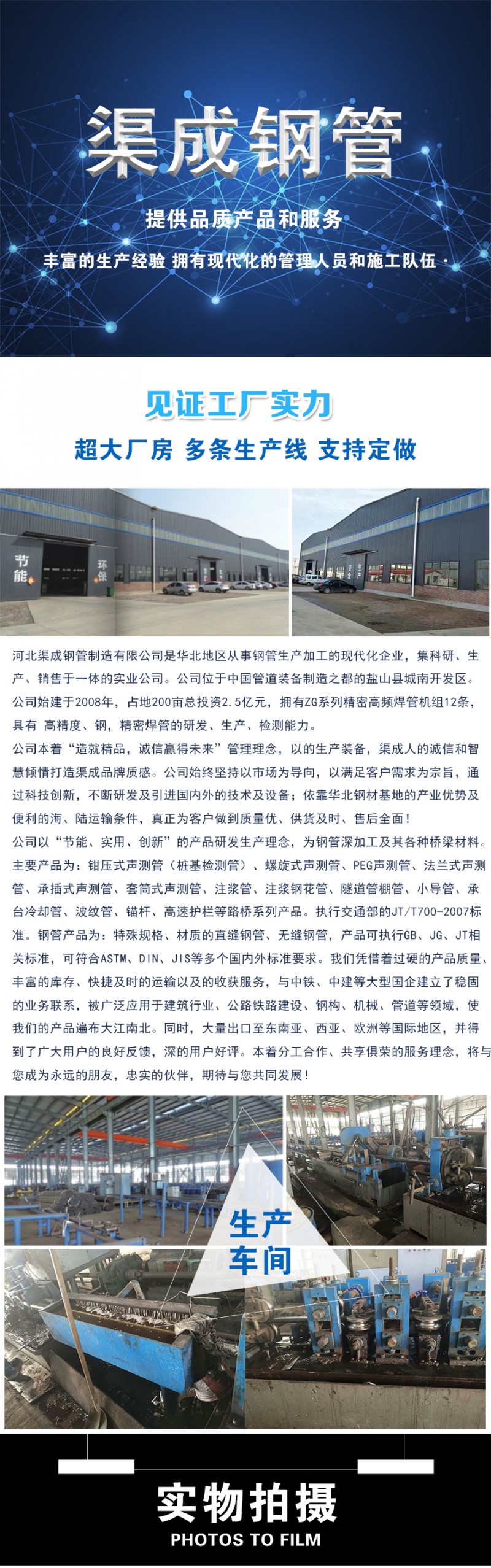 主营产品:钳压式声测管、螺旋式声测管、套筒式声测管、承插式声测管、法兰式声测管、PEG式声测管