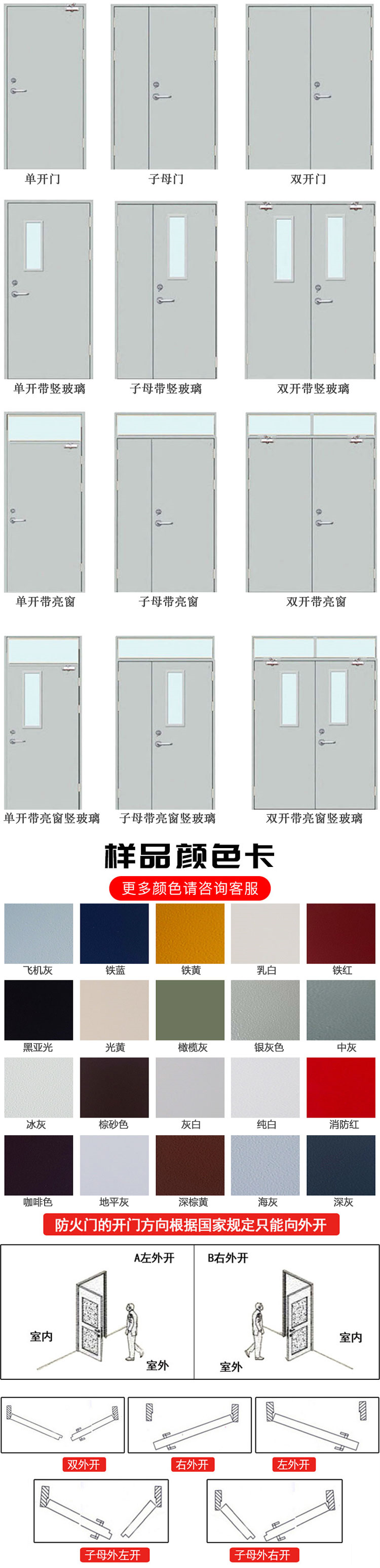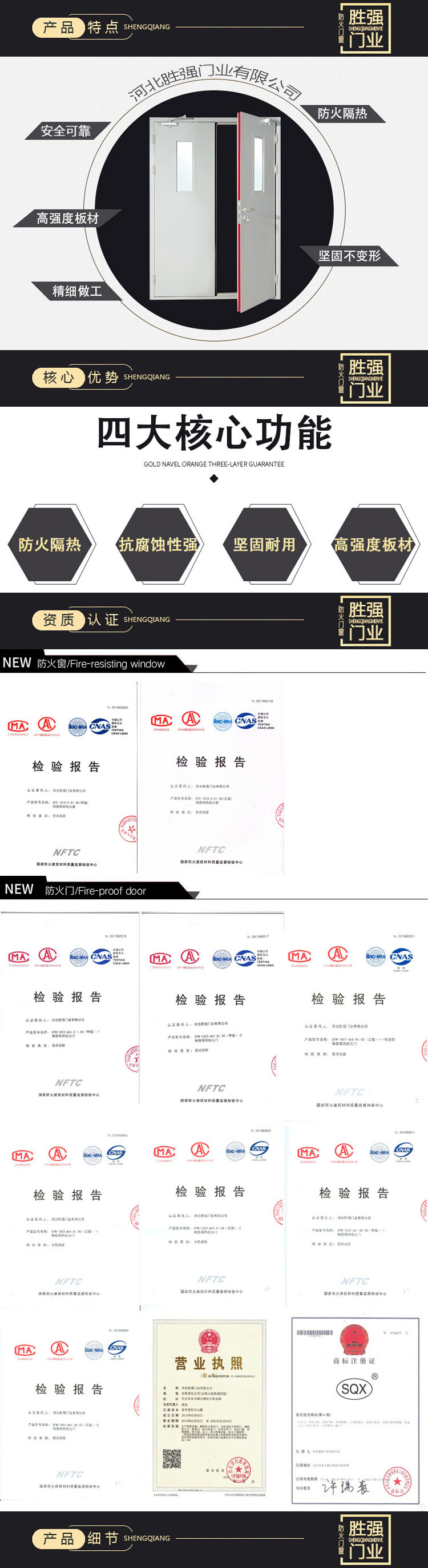 主营产品:防火门、防火窗、防火卷帘门、防盗门、工业门等
