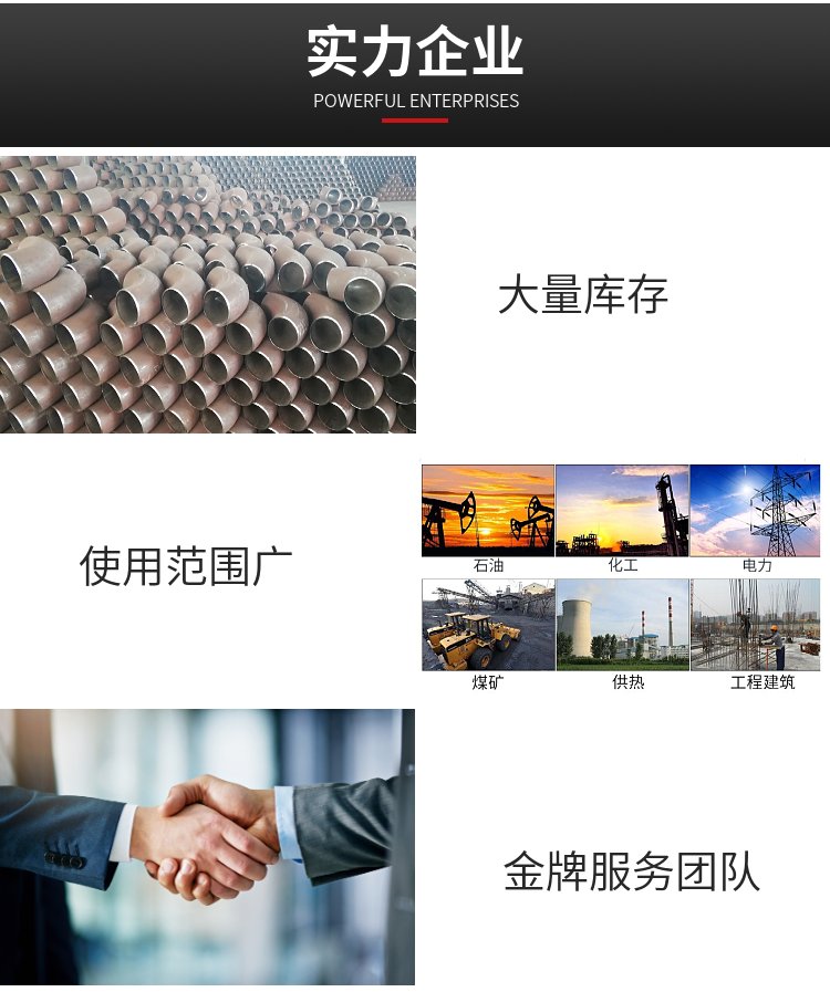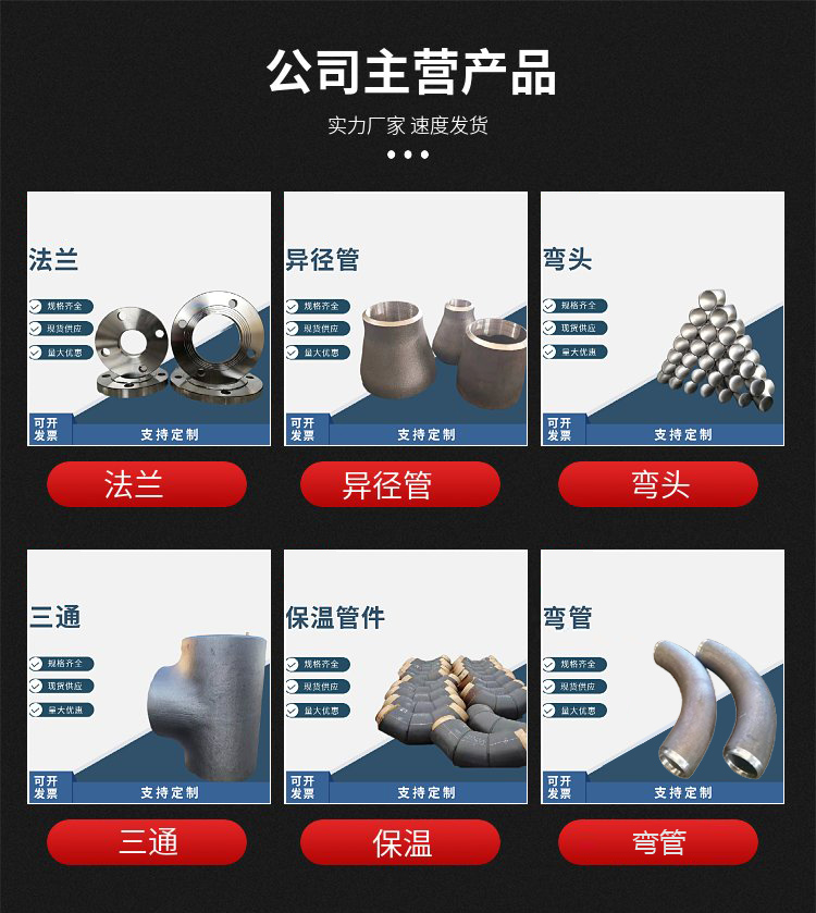 主营产品:弯头,国标弯头,对焊弯头,碳钢弯头;法兰,碳钢法兰,不锈钢法兰;三通,碳钢三通,不锈钢三通